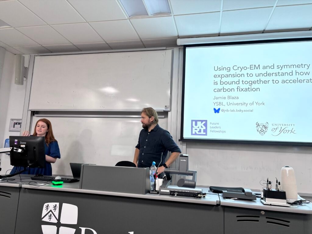 He later delivered a fantastic workshop on “Making the most of the UK’s cryo-EM resources for single-particle analysis” where researchers had the opportunity to learn from Jamie’s extensive experience using cryo-EM for his own research as well as setting up the cryo-EM facility at York Structural Biology Laboratory, which several groups at Durham use regularly to carry out exciting structural biology work.