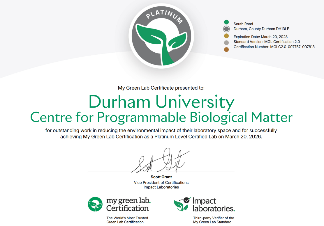 Over the past few months, our lab manager Lucy Epton, joined by our technical manager Dr Abbie Kelly and lab technician Ange Young, have been working hard towards this certification. They’ve continually assessed the CPBM’s environmental impact; learned about best practice and made changes to reduce our carbon footprint as a wider research team.